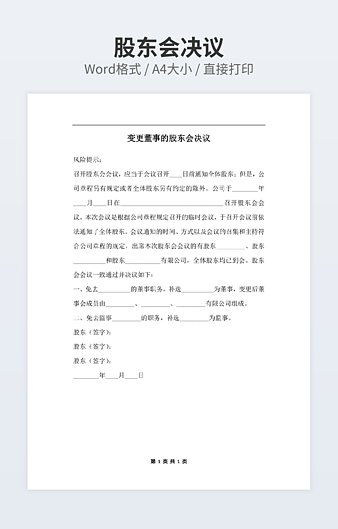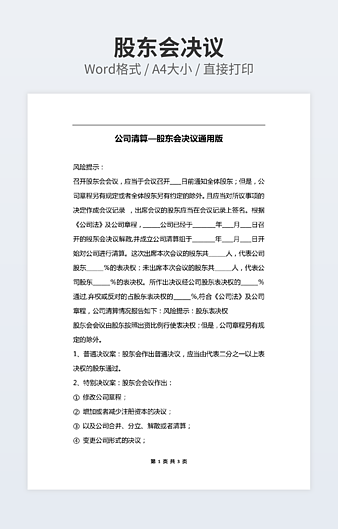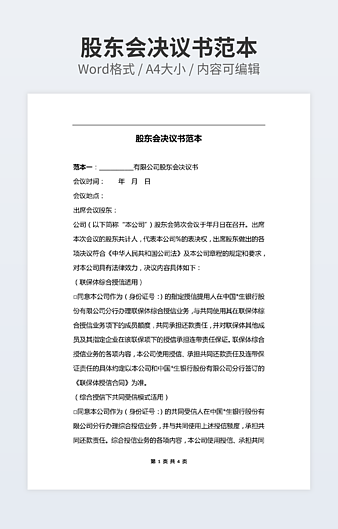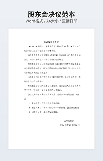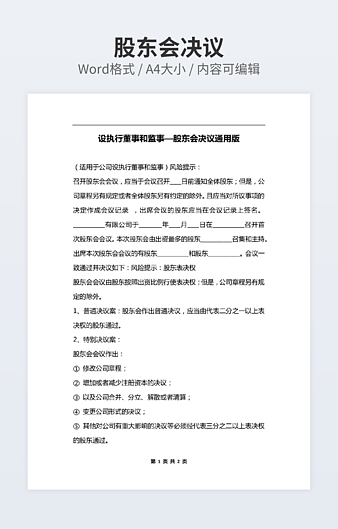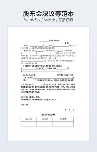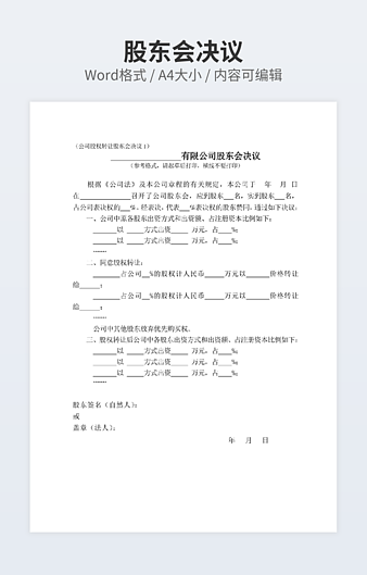 【特殊限制】设计师仅对作品中独创性部分享有著作权,对作品中含有的国旗、国徽等政治图案不享有权利,仅作为作品整体效果的示例展示,禁止商用。 相关关键词: 公司 股东会 决议 范文