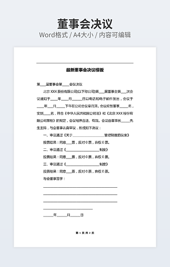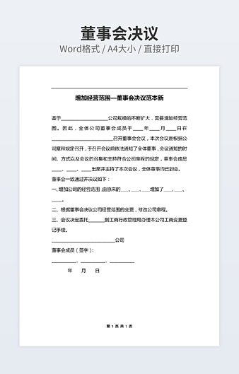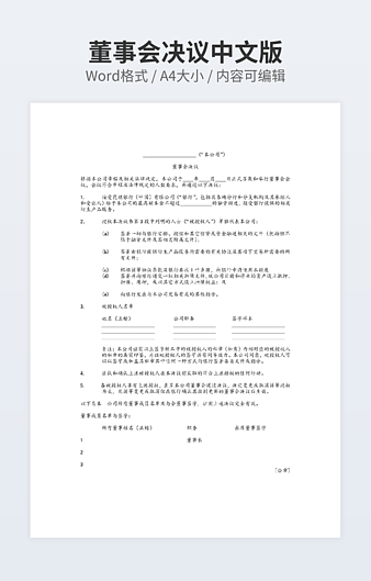 本作品内容为增加注册资本—董事会决议范本下载,大小为19.81KB,作品为高清大图模板,格式为docx, 属于董事会决议模板,作品模板源文件下载后可用编辑替换,模板中如有人物画像仅供参考禁止商用。小Q办公网-提供简历,PPT,Word,Excel优质模板素材下载模版平台,拥有海量的工作总结、竞聘求职、年终颁奖、计划书等。 通过小Q办公网下载董事会决议模板源文件编辑修改源文件文字和图片即可使用。