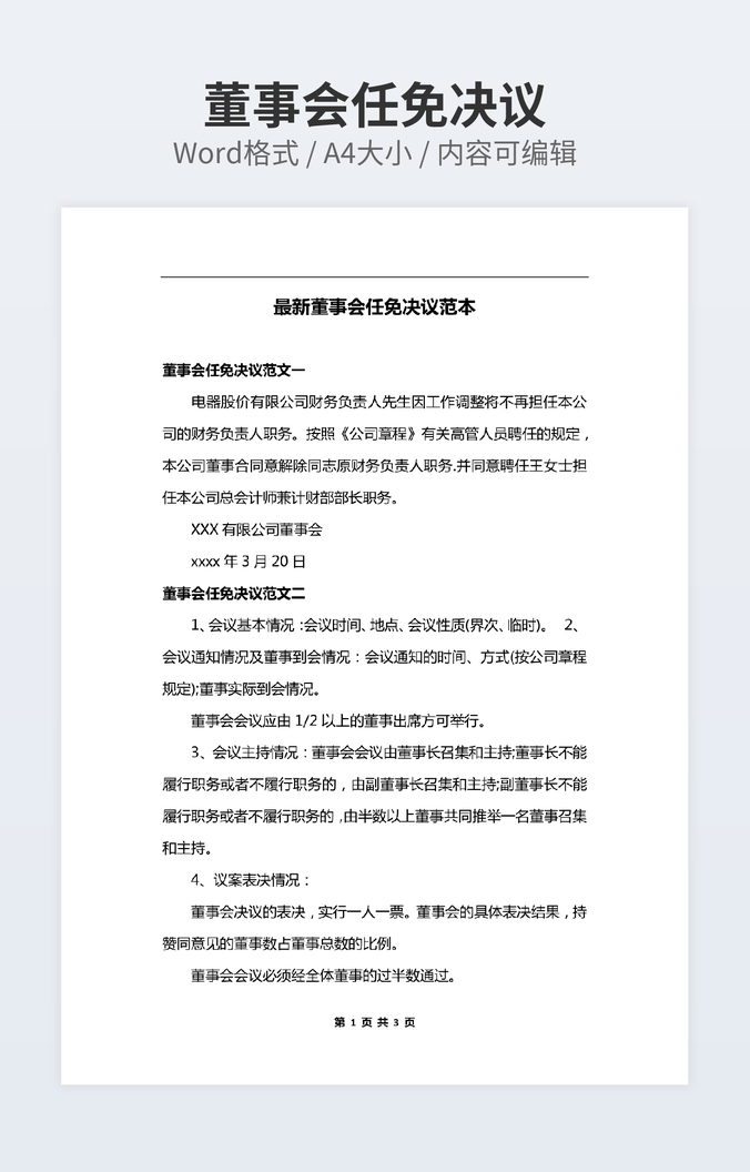 【特殊限制】设计师仅对作品中独创性部分享有著作权,对作品中含有的国旗、国徽等政治图案不享有权利,仅作为作品整体效果的示例展示,禁止商用。 相关关键词: 最新 董事会 任命 决议