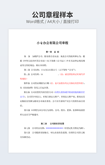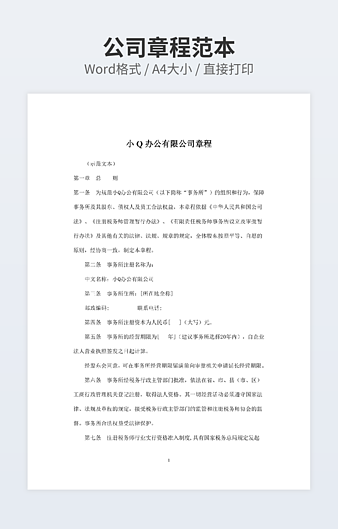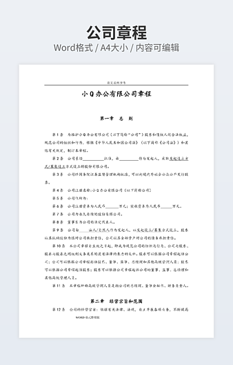 本作品内容为非上市公司公司章程范本专业版下载,大小为25.14KB,作品为高清大图模板,格式为docx, 属于公司章程 模板,作品模板源文件下载后可用编辑替换,模板中如有人物画像仅供参考禁止商用。小Q办公网-提供简历,PPT,Word,Excel优质模板素材下载模版平台,拥有海量的工作总结、竞聘求职、年终颁奖、计划书等。 通过小Q办公网下载公司章程 模板源文件编辑修改源文件文字和图片即可使用。