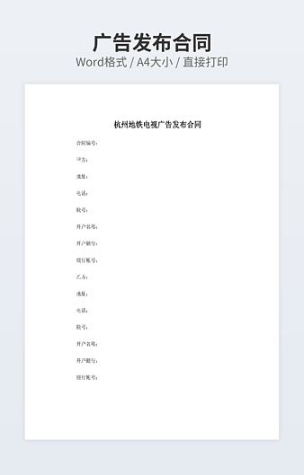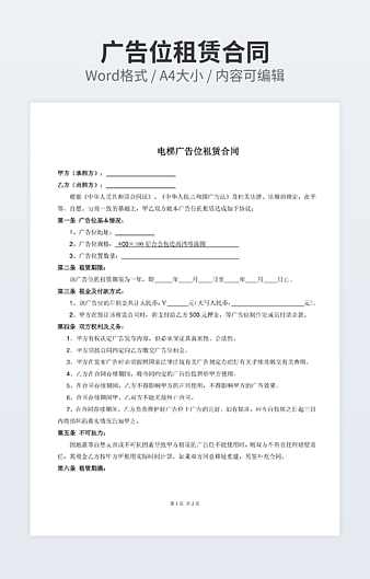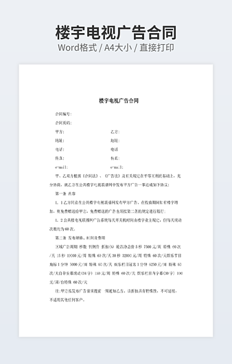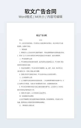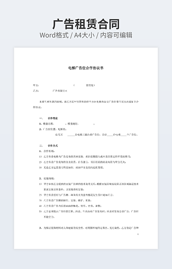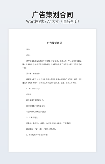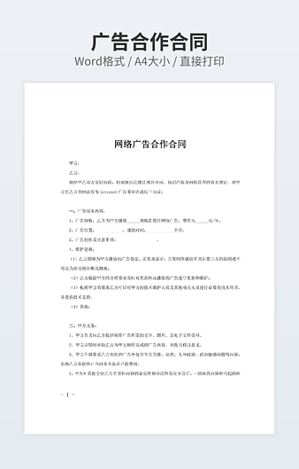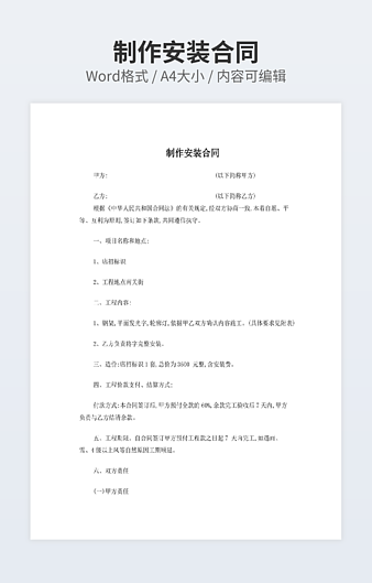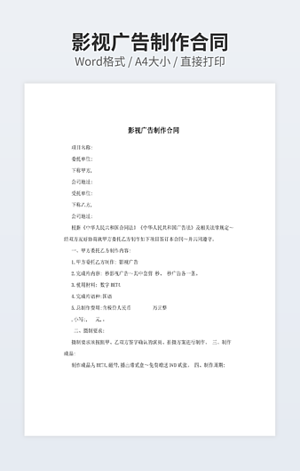 本作品内容为广告制作合同2下载,大小为15.9KB,作品为高清大图模板,格式为docx, 属于广告合同模板,作品模板源文件下载后可用编辑替换,模板中如有人物画像仅供参考禁止商用。小Q办公网-提供简历,PPT,Word,Excel优质模板素材下载模版平台,拥有海量的工作总结、竞聘求职、年终颁奖、计划书等。 通过小Q办公网下载广告合同模板源文件编辑修改源文件文字和图片即可使用。