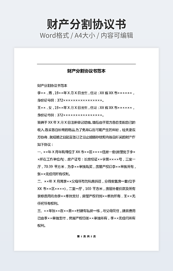【特殊限制】设计师仅对作品中独创性部分享有著作权,对作品中含有的国旗、国徽等政治图案不享有权利,仅作为作品整体效果的示例展示,禁止商用。 相关关键词: 男女双方 婚前 协议书 范本