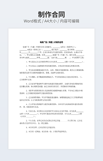 本作品内容为浙江省网络广告合同下载,大小为22.81KB,作品为高清大图模板,格式为docx, 属于广告合同模板,作品模板源文件下载后可用编辑替换,模板中如有人物画像仅供参考禁止商用。小Q办公网-提供简历,PPT,Word,Excel优质模板素材下载模版平台,拥有海量的工作总结、竞聘求职、年终颁奖、计划书等。 通过小Q办公网下载广告合同模板源文件编辑修改源文件文字和图片即可使用。