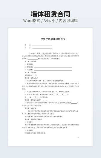 【特殊限制】设计师仅对作品中独创性部分享有著作权,对作品中含有的国旗、国徽等政治图案不享有权利,仅作为作品整体效果的示例展示,禁止商用。 相关关键词: 电梯 轿厢 广告 租赁 合同 模板