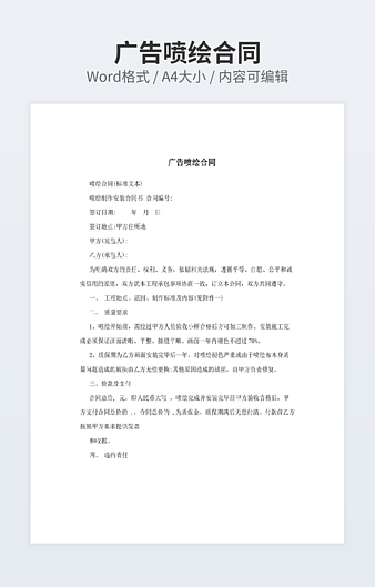 本作品内容为电梯轿厢广告租赁合同模板下载,大小为37KB,作品为高清大图模板,格式为doc, 属于广告合同模板,作品模板源文件下载后可用编辑替换,模板中如有人物画像仅供参考禁止商用。小Q办公网-提供简历,PPT,Word,Excel优质模板素材下载模版平台,拥有海量的工作总结、竞聘求职、年终颁奖、计划书等。 通过小Q办公网下载广告合同模板源文件编辑修改源文件文字和图片即可使用。