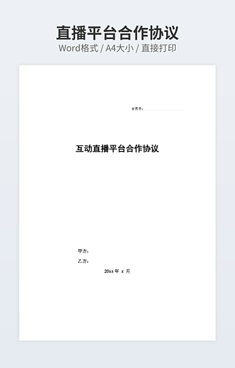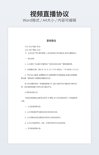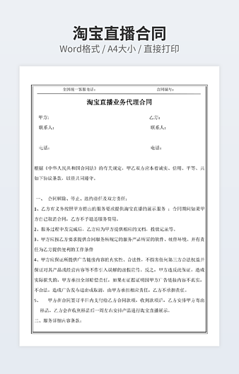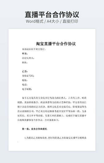 本作品内容为网上直播平台开发合同下载,大小为24KB,作品为高清大图模板,格式为doc, 属于直播带货模板,作品模板源文件下载后可用编辑替换,模板中如有人物画像仅供参考禁止商用。小Q办公网-提供简历,PPT,Word,Excel优质模板素材下载模版平台,拥有海量的工作总结、竞聘求职、年终颁奖、计划书等。 通过小Q办公网下载直播带货模板源文件编辑修改源文件文字和图片即可使用。