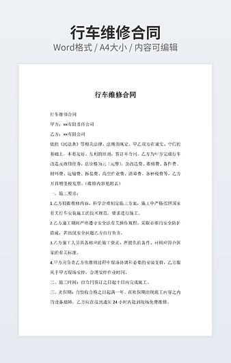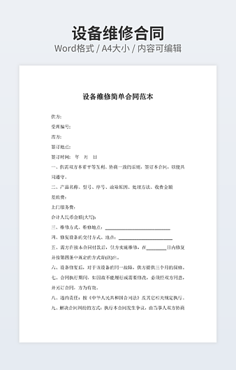本作品内容为楼房维修合同范本下载,大小为23.15KB,作品为高清大图模板,格式为docx, 属于维修合同模板,作品模板源文件下载后可用编辑替换,模板中如有人物画像仅供参考禁止商用。小Q办公网-提供简历,PPT,Word,Excel优质模板素材下载模版平台,拥有海量的工作总结、竞聘求职、年终颁奖、计划书等。 通过小Q办公网下载维修合同模板源文件编辑修改源文件文字和图片即可使用。