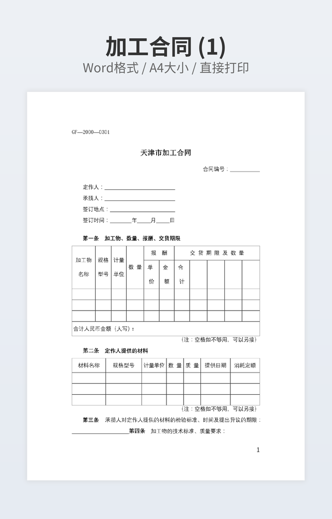 本作品内容为来料加工合同(轻工)下载,大小为23.58KB,作品为高清大图模板,格式为docx, 属于加工合同模板,作品模板源文件下载后可用编辑替换,模板中如有人物画像仅供参考禁止商用。小Q办公网-提供简历,PPT,Word,Excel优质模板素材下载模版平台,拥有海量的工作总结、竞聘求职、年终颁奖、计划书等。 通过小Q办公网下载加工合同模板源文件编辑修改源文件文字和图片即可使用。