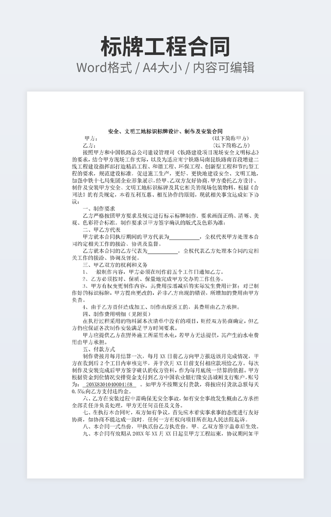 本作品内容为建设工程征用土地合同下载,大小为20.09KB,作品为高清大图模板,格式为docx, 属于工程合同模板,作品模板源文件下载后可用编辑替换,模板中如有人物画像仅供参考禁止商用。小Q办公网-提供简历,PPT,Word,Excel优质模板素材下载模版平台,拥有海量的工作总结、竞聘求职、年终颁奖、计划书等。 通过小Q办公网下载工程合同模板源文件编辑修改源文件文字和图片即可使用。