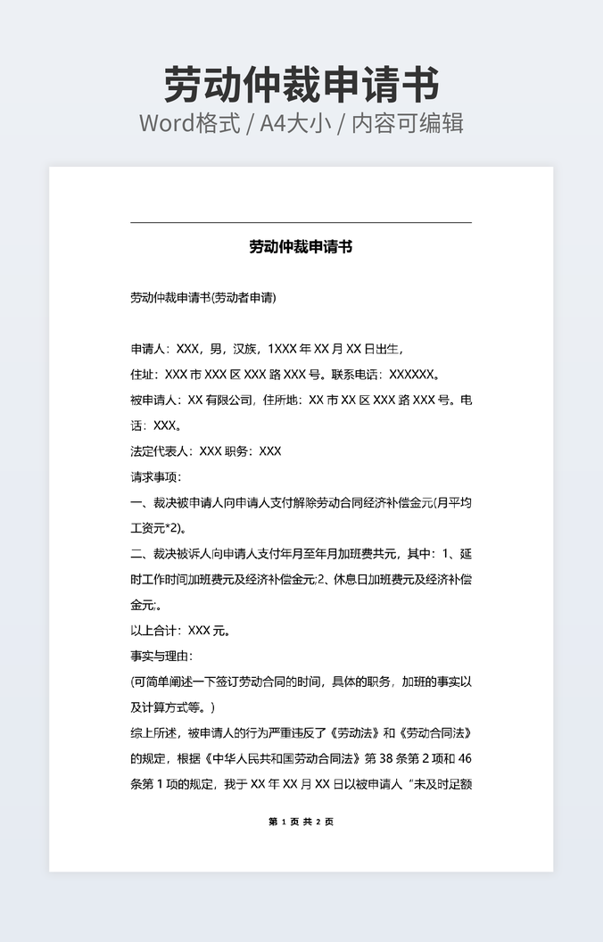 本作品内容为最新劳动仲裁申请书范本-员工篇下载,大小为21.4KB,作品为高清大图模板,格式为docx, 属于申请书模板,作品模板源文件下载后可用编辑替换,模板中如有人物画像仅供参考禁止商用。小Q办公网-提供简历,PPT,Word,Excel优质模板素材下载模版平台,拥有海量的工作总结、竞聘求职、年终颁奖、计划书等。 通过小Q办公网下载申请书模板源文件编辑修改源文件文字和图片即可使用。
