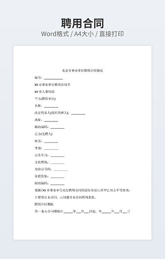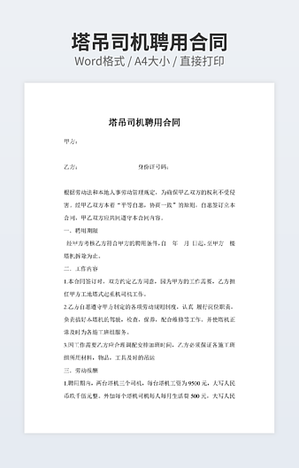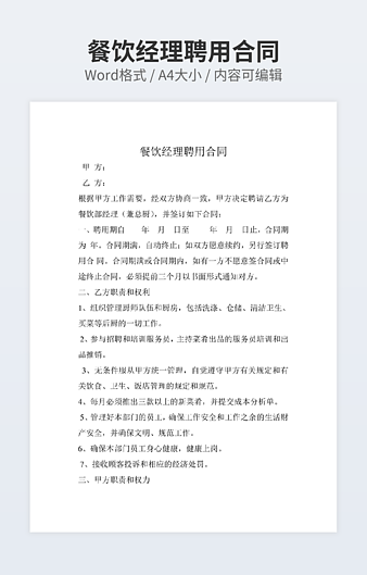【特殊限制】设计师仅对作品中独创性部分享有著作权,对作品中含有的国旗、国徽等政治图案不享有权利,仅作为作品整体效果的示例展示,禁止商用。 相关关键词: 炊事员 聘用 合同书