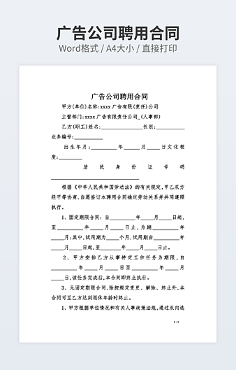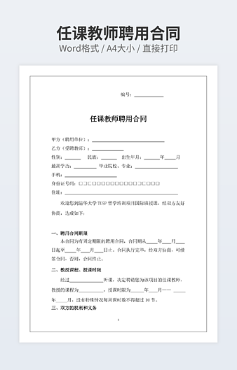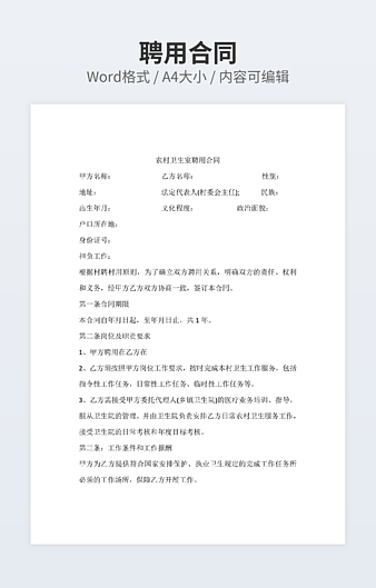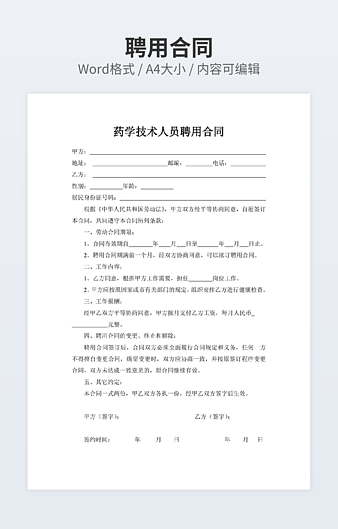 【特殊限制】设计师仅对作品中独创性部分享有著作权,对作品中含有的国旗、国徽等政治图案不享有权利,仅作为作品整体效果的示例展示,禁止商用。 相关关键词: 事业单位 聘用 合同 模板
