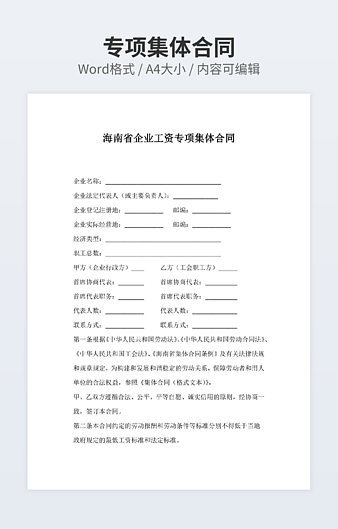 上一篇:企业工资专项集体合同下一篇:企业集体合同书范本为您推荐