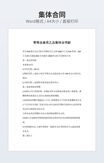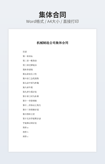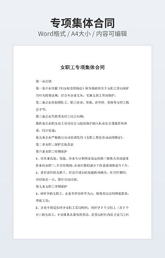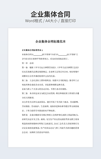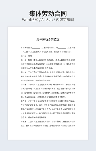 本作品内容为企业集体合同 6篇下载,大小为40.9KB,作品为高清大图模板,格式为docx, 属于集体合同模板,作品模板源文件下载后可用编辑替换,模板中如有人物画像仅供参考禁止商用。小Q办公网-提供简历,PPT,Word,Excel优质模板素材下载模版平台,拥有海量的工作总结、竞聘求职、年终颁奖、计划书等。 通过小Q办公网下载集体合同模板源文件编辑修改源文件文字和图片即可使用。