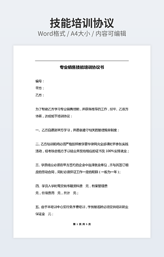 本作品内容为产品加工行业培训协议范本下载,大小为17.89KB,作品为高清大图模板,格式为docx, 属于培训协议模板,作品模板源文件下载后可用编辑替换,模板中如有人物画像仅供参考禁止商用。小Q办公网-提供简历,PPT,Word,Excel优质模板素材下载模版平台,拥有海量的工作总结、竞聘求职、年终颁奖、计划书等。 通过小Q办公网下载培训协议模板源文件编辑修改源文件文字和图片即可使用。