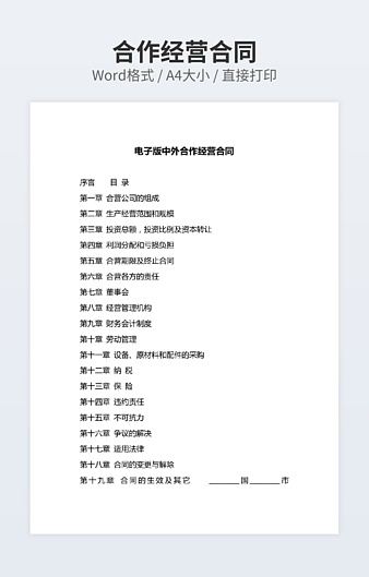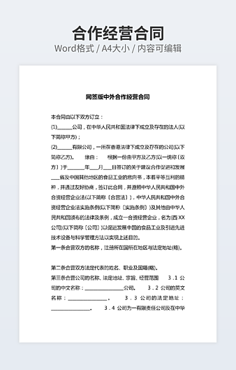 本作品内容为中外高等教育合作办学协议书模板下载,大小为18.25KB,作品为高清大图模板,格式为docx, 属于中外合作模板,作品模板源文件下载后可用编辑替换,模板中如有人物画像仅供参考禁止商用。小Q办公网-提供简历,PPT,Word,Excel优质模板素材下载模版平台,拥有海量的工作总结、竞聘求职、年终颁奖、计划书等。 通过小Q办公网下载中外合作模板源文件编辑修改源文件文字和图片即可使用。