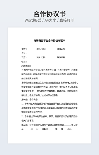 【特殊限制】设计师仅对作品中独创性部分享有著作权,对作品中含有的国旗、国徽等政治图案不享有权利,仅作为作品整体效果的示例展示,禁止商用。 相关关键词: 电子 商务平台 招商合作 协议 范本 最新 整理