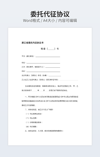 本作品内容为浙江省委托代办签证协议下载,大小为22.9KB,作品为高清大图模板,格式为docx, 属于委托合同模板,作品模板源文件下载后可用编辑替换,模板中如有人物画像仅供参考禁止商用。小Q办公网-提供简历,PPT,Word,Excel优质模板素材下载模版平台,拥有海量的工作总结、竞聘求职、年终颁奖、计划书等。 通过小Q办公网下载委托合同模板源文件编辑修改源文件文字和图片即可使用。