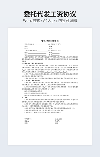 本作品内容为浙江省委托进口合同下载,大小为22.57KB,作品为高清大图模板,格式为docx, 属于委托合同模板,作品模板源文件下载后可用编辑替换,模板中如有人物画像仅供参考禁止商用。小Q办公网-提供简历,PPT,Word,Excel优质模板素材下载模版平台,拥有海量的工作总结、竞聘求职、年终颁奖、计划书等。 通过小Q办公网下载委托合同模板源文件编辑修改源文件文字和图片即可使用。