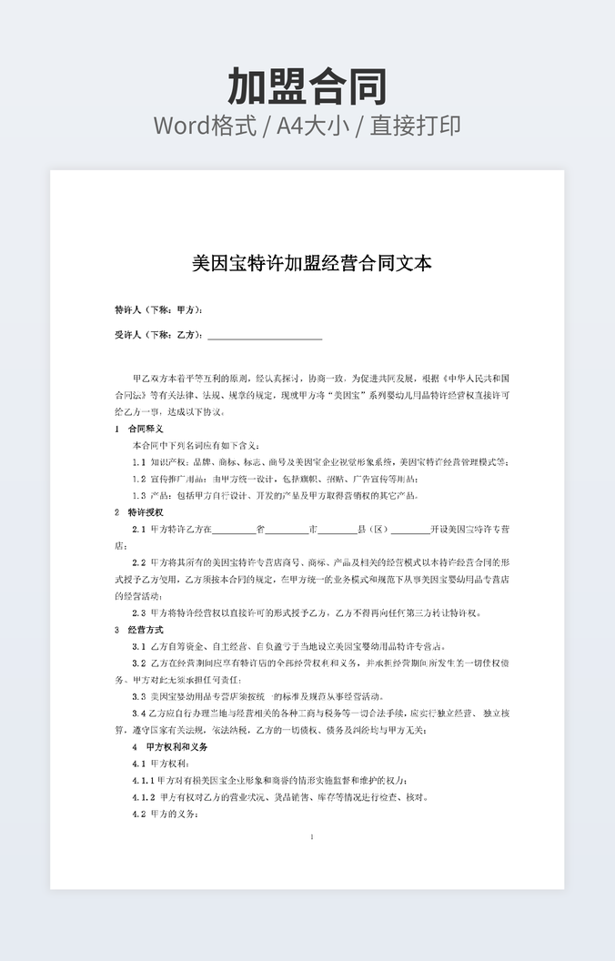 【特殊限制】设计师仅对作品中独创性部分享有著作权,对作品中含有的国旗、国徽等政治图案不享有权利,仅作为作品整体效果的示例展示,禁止商用。 相关关键词: 肯德基 加盟 合同书 模板