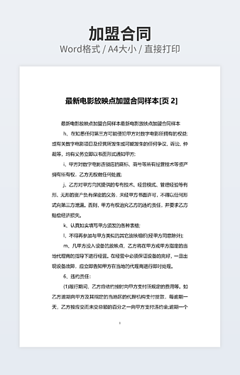 本作品内容为餐饮技术加盟协议合同标准版下载,大小为57.18KB,作品为高清大图模板,格式为doc, 属于加盟合同模板,作品模板源文件下载后可用编辑替换,模板中如有人物画像仅供参考禁止商用。小Q办公网-提供简历,PPT,Word,Excel优质模板素材下载模版平台,拥有海量的工作总结、竞聘求职、年终颁奖、计划书等。 通过小Q办公网下载加盟合同模板源文件编辑修改源文件文字和图片即可使用。