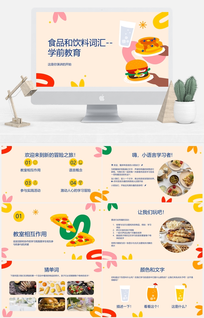 暖橘色温柔教学课件PPT模板
