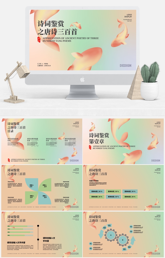 【特殊限制】设计师仅对作品中独创性部分享有著作权,对作品中含有的国旗、国徽等政治图案不享有权利,仅作为作品整体效果的示例展示,禁止商用。 相关关键词: 绿色 意境 简约风 古诗词 鉴赏 教学 课件 教师 学生 总结