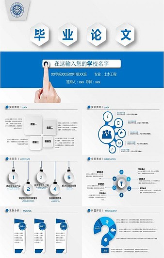 【特殊限制】设计师仅对作品中独创性部分享有著作权,对作品中含有的国旗、国徽等政治图案不享有权利,仅作为作品整体效果的示例展示,禁止商用。 相关关键词: 蓝色 小清新 毕业 论文 答辩 校园 学生 学术 汇报