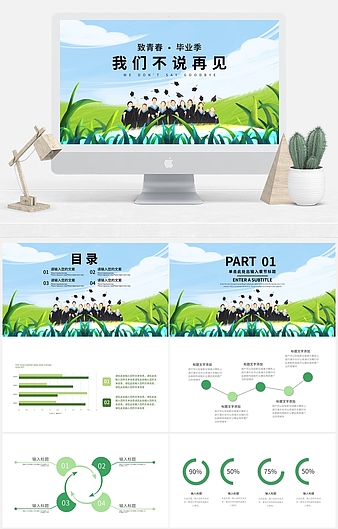 【特殊限制】设计师仅对作品中独创性部分享有著作权,对作品中含有的国旗、国徽等政治图案不享有权利,仅作为作品整体效果的示例展示,禁止商用。 相关关键词: 绿色 小清新 青春 毕业季 纪念 相册 校园 学生 报告