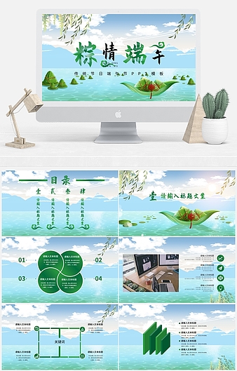 绿色简约插画风端午节PPT模板