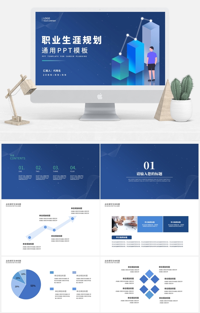 【特殊限制】设计师仅对作品中独创性部分享有著作权,对作品中含有的国旗、国徽等政治图案不享有权利,仅作为作品整体效果的示例展示,禁止商用。 相关关键词: 蓝色 简约风 职业 生涯 规划 通用 工作 职场