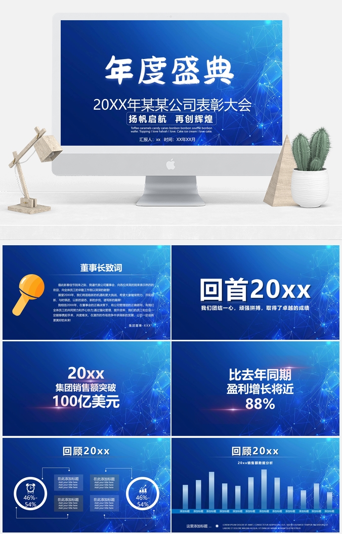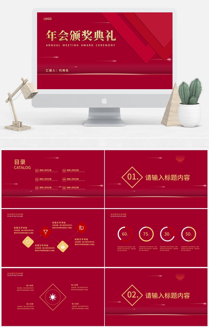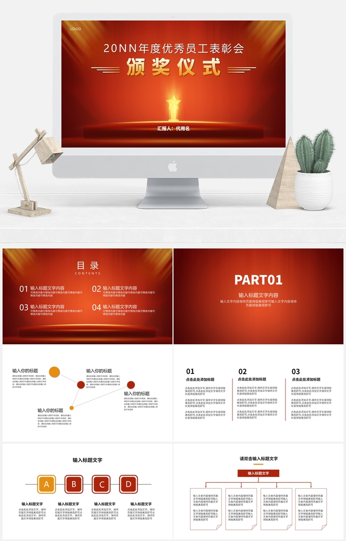【特殊限制】设计师仅对作品中独创性部分享有著作权,对作品中含有的国旗、国徽等政治图案不享有权利,仅作为作品整体效果的示例展示,禁止商用。 相关关键词: 红色 奢华风 颁奖 典礼 企业 职场 庆典 员工 年会