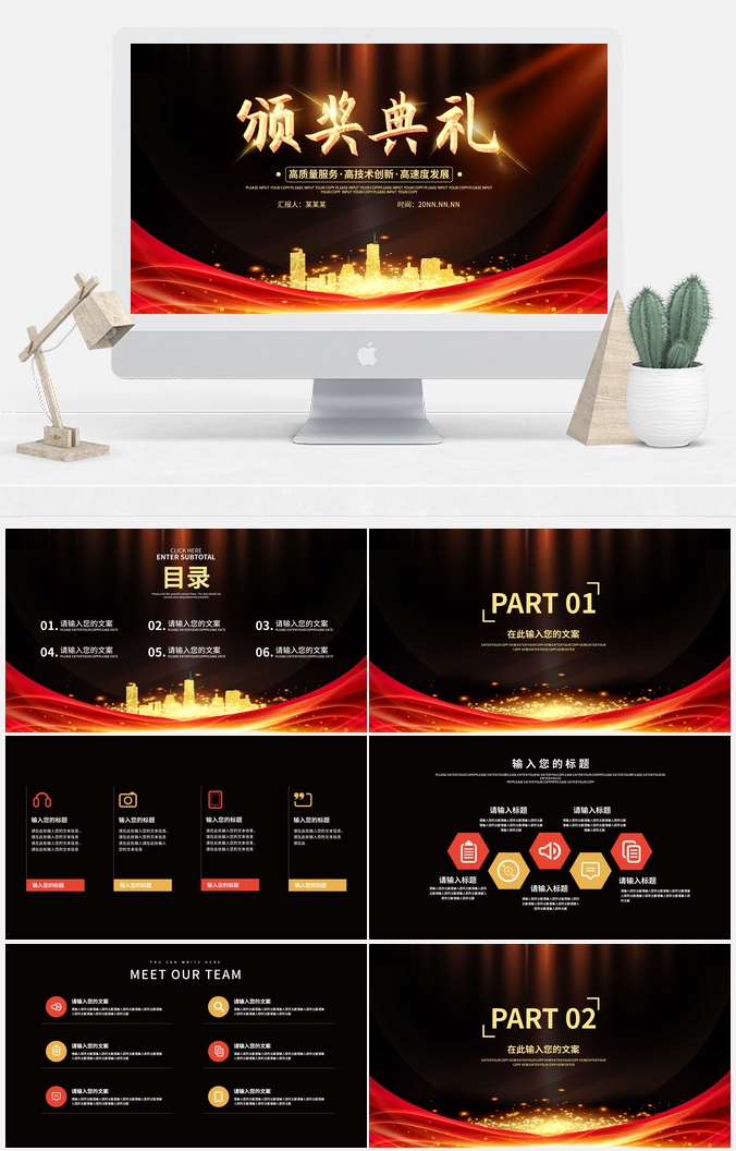 本作品内容为红色奢华风颁奖典礼PPT模板下载,大小为1.51MB,作品为高清大图模板,格式为pptx, 属于颁奖典礼模板,作品模板源文件下载后可用编辑替换,模板中如有人物画像仅供参考禁止商用。小Q办公网-提供简历,PPT,Word,Excel优质模板素材下载模版平台,拥有海量的工作总结、竞聘求职、年终颁奖、计划书等。 通过小Q办公网下载颁奖典礼模板源文件编辑修改源文件文字和图片即可使用。