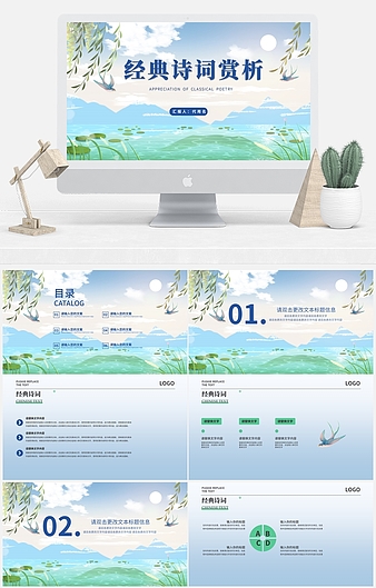 【特殊限制】设计师仅对作品中独创性部分享有著作权,对作品中含有的国旗、国徽等政治图案不享有权利,仅作为作品整体效果的示例展示,禁止商用。 相关关键词: 绿色 中国风 小学 语文 课件 古诗词 欣赏 学习 教学