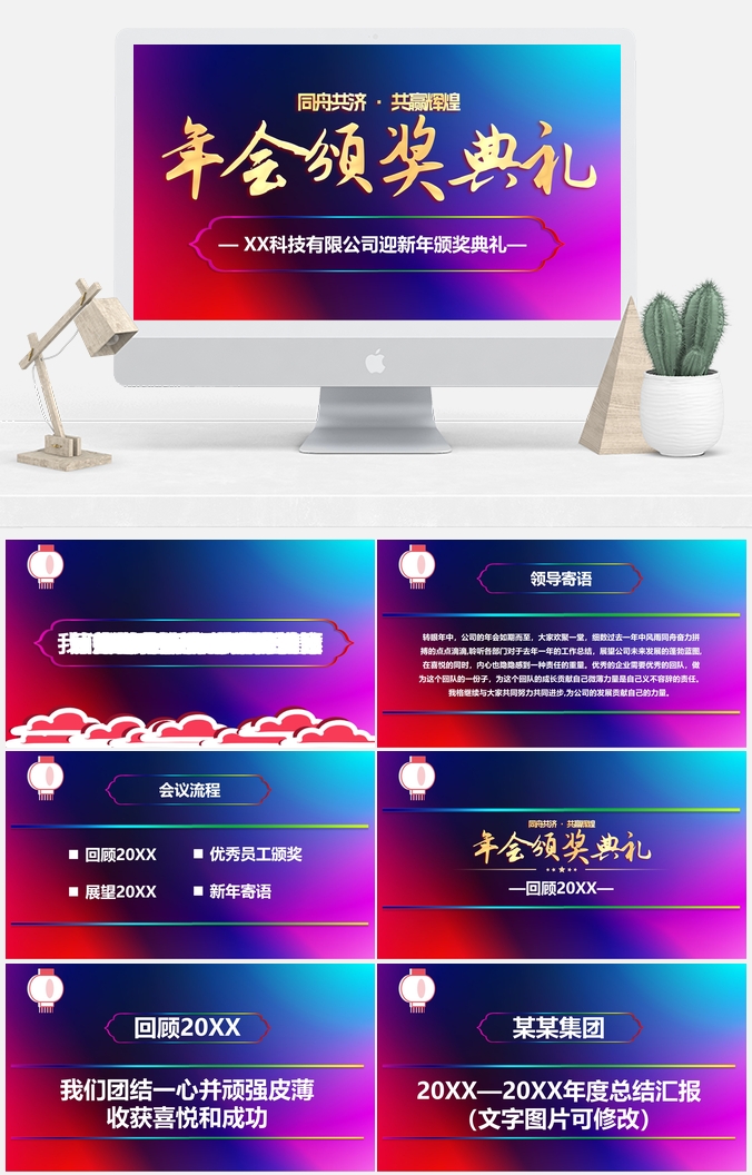 【特殊限制】设计师仅对作品中独创性部分享有著作权,对作品中含有的国旗、国徽等政治图案不享有权利,仅作为作品整体效果的示例展示,禁止商用。 相关关键词: 红色 简约风 颁奖 仪式 重大庆典 员工 表彰会 年度