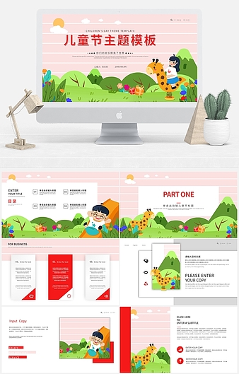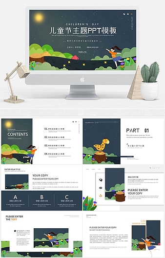 绿色卡通森林儿童节PPT模板