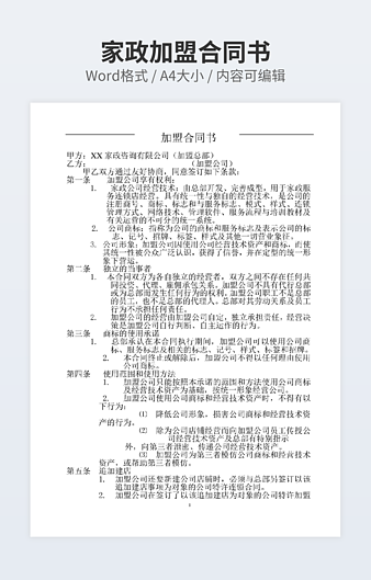 本作品内容为教育机构分校加盟协议书下载,大小为20KB,作品为高清大图模板,格式为doc, 属于加盟合同模板,作品模板源文件下载后可用编辑替换,模板中如有人物画像仅供参考禁止商用。小Q办公网-提供简历,PPT,Word,Excel优质模板素材下载模版平台,拥有海量的工作总结、竞聘求职、年终颁奖、计划书等。 通过小Q办公网下载加盟合同模板源文件编辑修改源文件文字和图片即可使用。