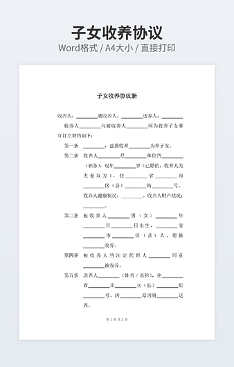 【特殊限制】设计师仅对作品中独创性部分享有著作权,对作品中含有的国旗、国徽等政治图案不享有权利,仅作为作品整体效果的示例展示,禁止商用。 相关关键词: 外国人 收养 中国 子女 协议书