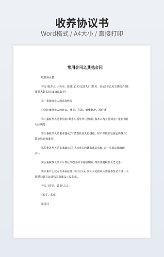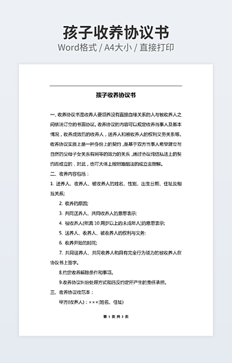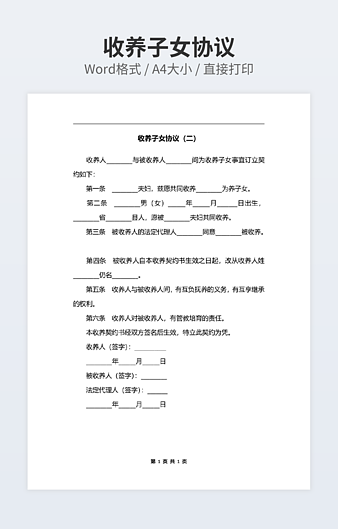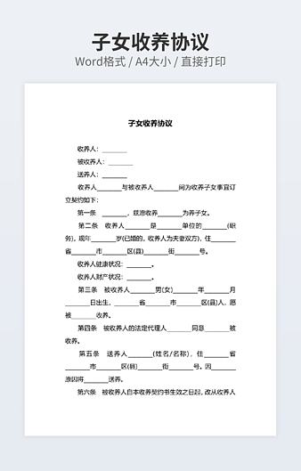 【特殊限制】设计师仅对作品中独创性部分享有著作权,对作品中含有的国旗、国徽等政治图案不享有权利,仅作为作品整体效果的示例展示,禁止商用。 相关关键词: 收养 子女 契约