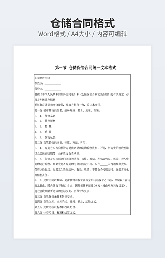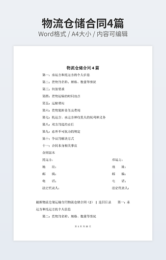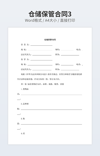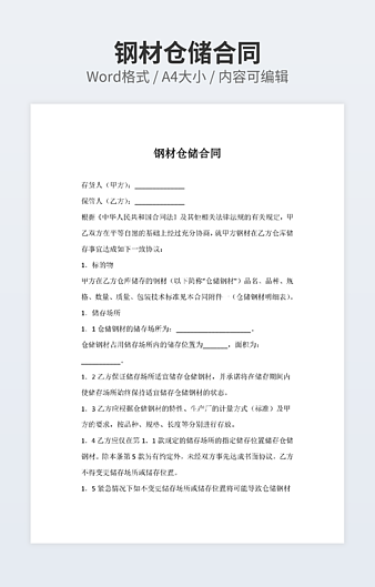 【特殊限制】设计师仅对作品中独创性部分享有著作权,对作品中含有的国旗、国徽等政治图案不享有权利,仅作为作品整体效果的示例展示,禁止商用。 相关关键词: 仓储 合同