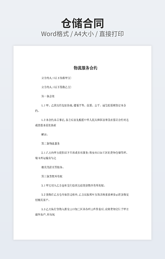 本作品内容为仓储合同样式范文下载,大小为12.37KB,作品为高清大图模板,格式为docx, 属于仓储合同模板,作品模板源文件下载后可用编辑替换,模板中如有人物画像仅供参考禁止商用。小Q办公网-提供简历,PPT,Word,Excel优质模板素材下载模版平台,拥有海量的工作总结、竞聘求职、年终颁奖、计划书等。 通过小Q办公网下载仓储合同模板源文件编辑修改源文件文字和图片即可使用。