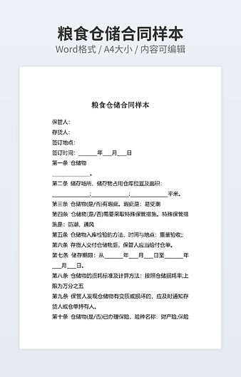 【特殊限制】设计师仅对作品中独创性部分享有著作权,对作品中含有的国旗、国徽等政治图案不享有权利,仅作为作品整体效果的示例展示,禁止商用。 相关关键词: 仓储 合同