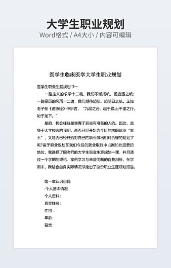 本作品内容为大学五年职业规划下载,大小为19.58KB,作品为高清大图模板,格式为docx, 属于职业规划模板,作品模板源文件下载后可用编辑替换,模板中如有人物画像仅供参考禁止商用。小Q办公网-提供简历,PPT,Word,Excel优质模板素材下载模版平台,拥有海量的工作总结、竞聘求职、年终颁奖、计划书等。 通过小Q办公网下载职业规划模板源文件编辑修改源文件文字和图片即可使用。