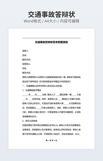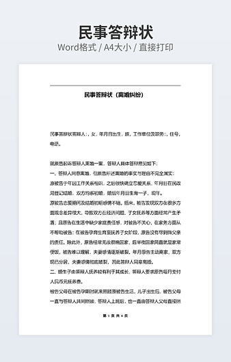 本作品内容为工程款纠纷答辩状下载,大小为18.07KB,作品为高清大图模板,格式为docx, 属于答辩状模板,作品模板源文件下载后可用编辑替换,模板中如有人物画像仅供参考禁止商用。小Q办公网-提供简历,PPT,Word,Excel优质模板素材下载模版平台,拥有海量的工作总结、竞聘求职、年终颁奖、计划书等。 通过小Q办公网下载答辩状模板源文件编辑修改源文件文字和图片即可使用。
