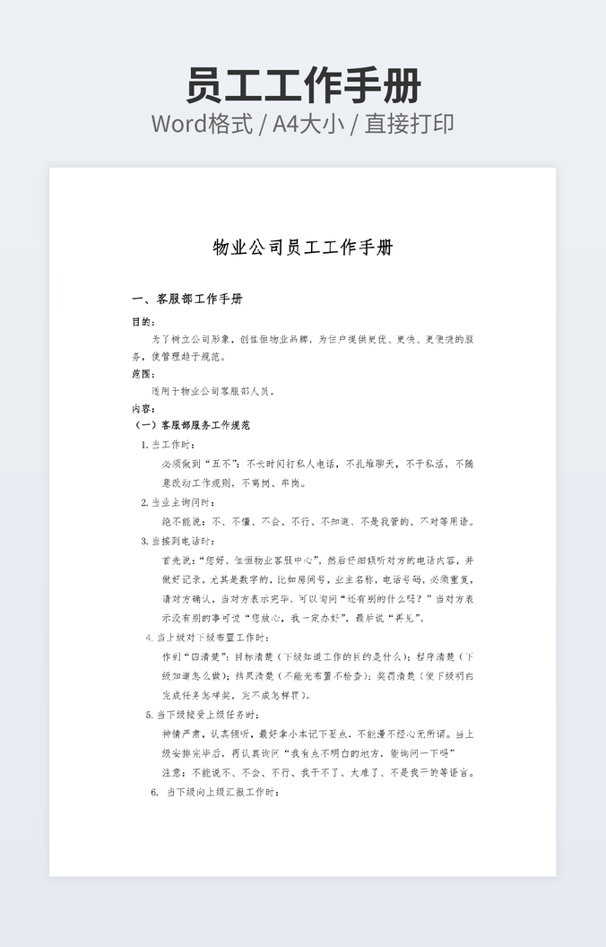 本作品内容为某建筑公司员工手册下载,大小为121.75KB,作品为高清大图模板,格式为doc, 属于员工手册模板,作品模板源文件下载后可用编辑替换,模板中如有人物画像仅供参考禁止商用。小Q办公网-提供简历,PPT,Word,Excel优质模板素材下载模版平台,拥有海量的工作总结、竞聘求职、年终颁奖、计划书等。 通过小Q办公网下载员工手册模板源文件编辑修改源文件文字和图片即可使用。