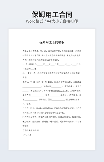 本作品内容为20XX年保姆雇佣合同模板下载,大小为15.98KB,作品为高清大图模板,格式为docx, 属于保姆合同模板,作品模板源文件下载后可用编辑替换,模板中如有人物画像仅供参考禁止商用。小Q办公网-提供简历,PPT,Word,Excel优质模板素材下载模版平台,拥有海量的工作总结、竞聘求职、年终颁奖、计划书等。 通过小Q办公网下载保姆合同模板源文件编辑修改源文件文字和图片即可使用。