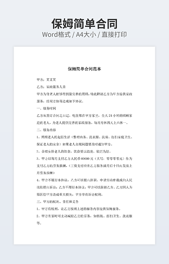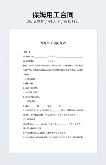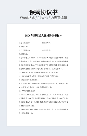 【特殊限制】设计师仅对作品中独创性部分享有著作权,对作品中含有的国旗、国徽等政治图案不享有权利,仅作为作品整体效果的示例展示,禁止商用。 相关关键词: 20XX 保姆 雇佣 合同 模板