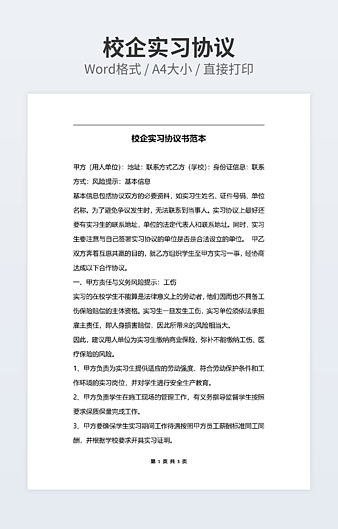 【特殊限制】设计师仅对作品中独创性部分享有著作权,对作品中含有的国旗、国徽等政治图案不享有权利,仅作为作品整体效果的示例展示,禁止商用。 相关关键词: 20XX 最新 实习 协议书