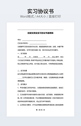 【特殊限制】设计师仅对作品中独创性部分享有著作权,对作品中含有的国旗、国徽等政治图案不享有权利,仅作为作品整体效果的示例展示,禁止商用。 相关关键词: 学生 实习 协议
