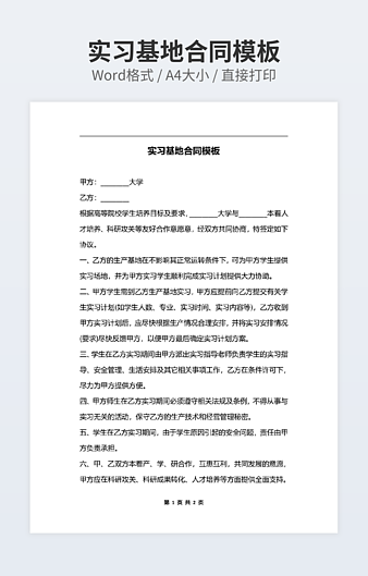 【特殊限制】设计师仅对作品中独创性部分享有著作权,对作品中含有的国旗、国徽等政治图案不享有权利,仅作为作品整体效果的示例展示,禁止商用。 相关关键词: 应届毕业生 实习 合同范本